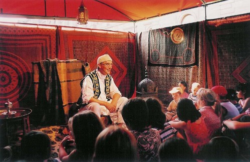 4. Als Klassenzimmertheater, das von Klassenzimmer zu Klassenzimmer zieht. Ein Teppichverkäufer erzählt die Geschichten.